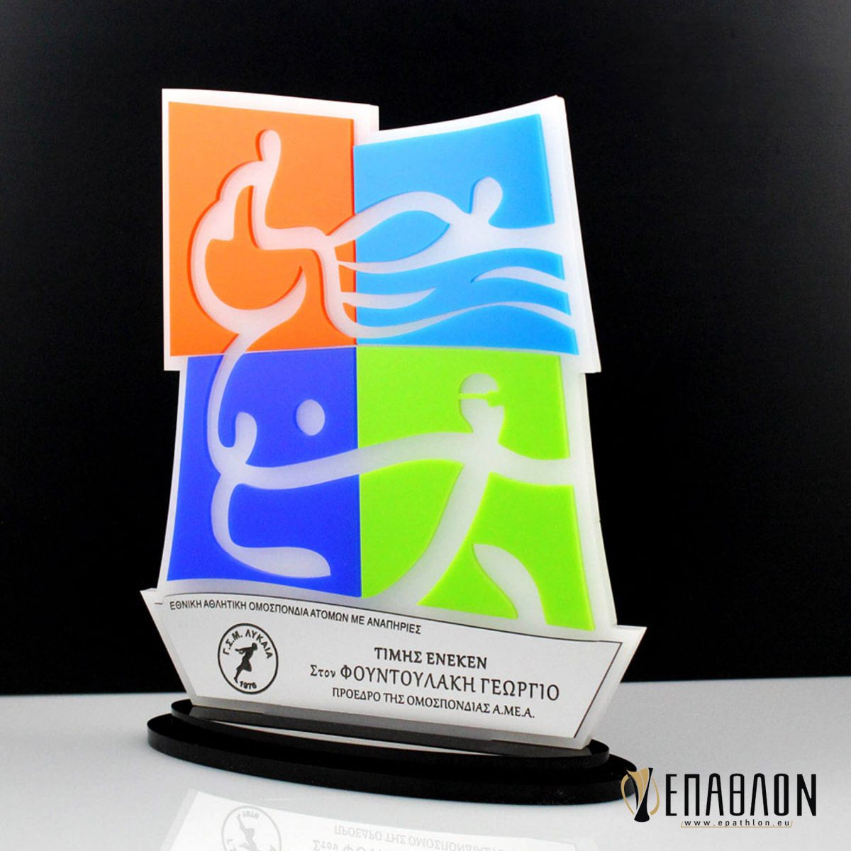 Custom αναμνηστική πλακέτα από το συνδυασμό ακρυλικών βασισμένη στο λογότυπο της Εθν.Αθλητικής Ομοσπονδίας Ατόμων με Αναπηρίες