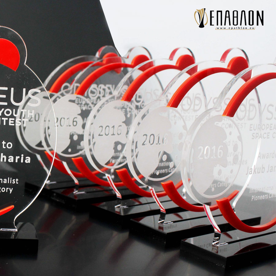 • Υλικά: Ακρυλικό διάφανο πάχους 6mm με χάραξη, κόκκινο ακρυλικό πάχους 3mm, βάση από μαύρο ακρυλικό
