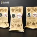 • Υλικά: Ξύλο πάχους 7mm με χάραξη, λογότυπα σε κονκάρδες