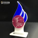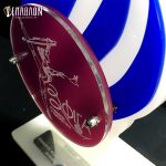 • Υλικά: Ακρυλικό αμμοβολή πάχους 10mm, μπλε και φούξια ακρυλικό πάχους 3mm, διάφανο ακρυλικό πάχους 3mm με χάραξη, βάση από ακρυλικό αμμοβολή