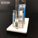 • Υλικά: Διάφανο ακρυλικό πάχους 8mm με χάραξη, διάφανο ακυρικό πάχους 6mm, γκρι και γαλάζιο ακρυλικό πάχους 3mm. Βάση από μαύρο και λευκό ακρυλικό
