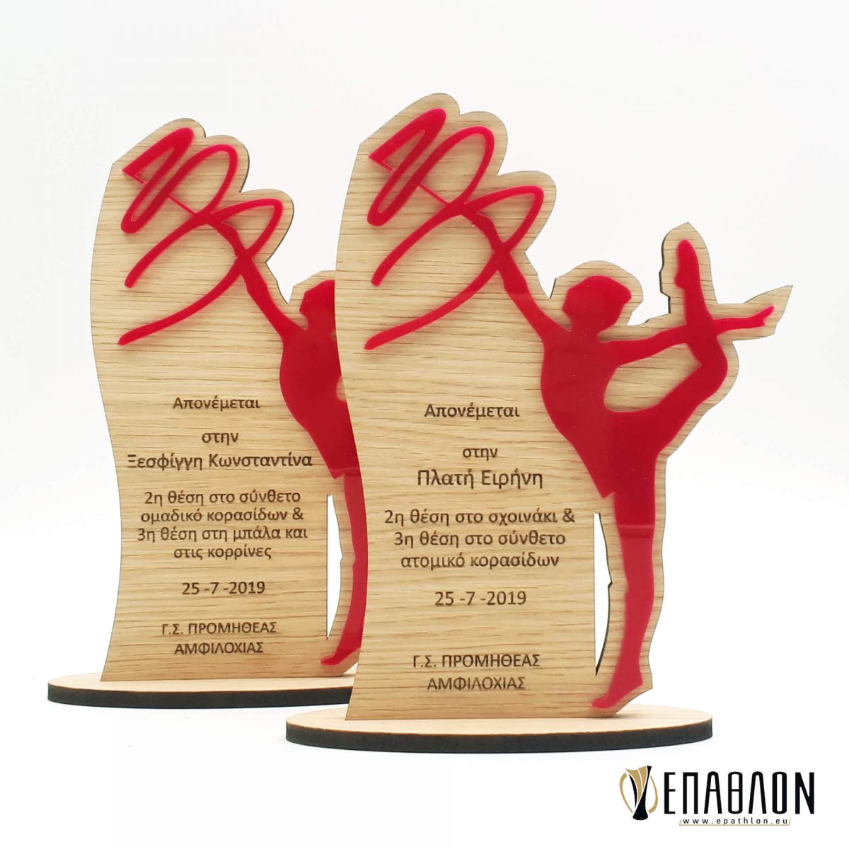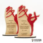 Custom αναμνηστική πλακέτα από τα συνδυασμό ξύλου και ακρυλικου με θέμα τη ρυθμική γυμναστική