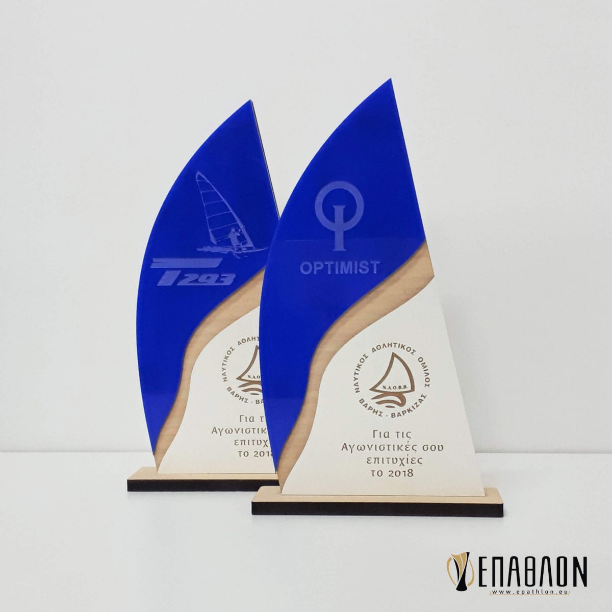 • Υλικά: Ξύλο πάχους 7mm, λευκό ξύλο πάχους 3mm με χάραξη, μπλε ακρυλικό πάχους 3mm με χάραξη, βάση από ξύλο