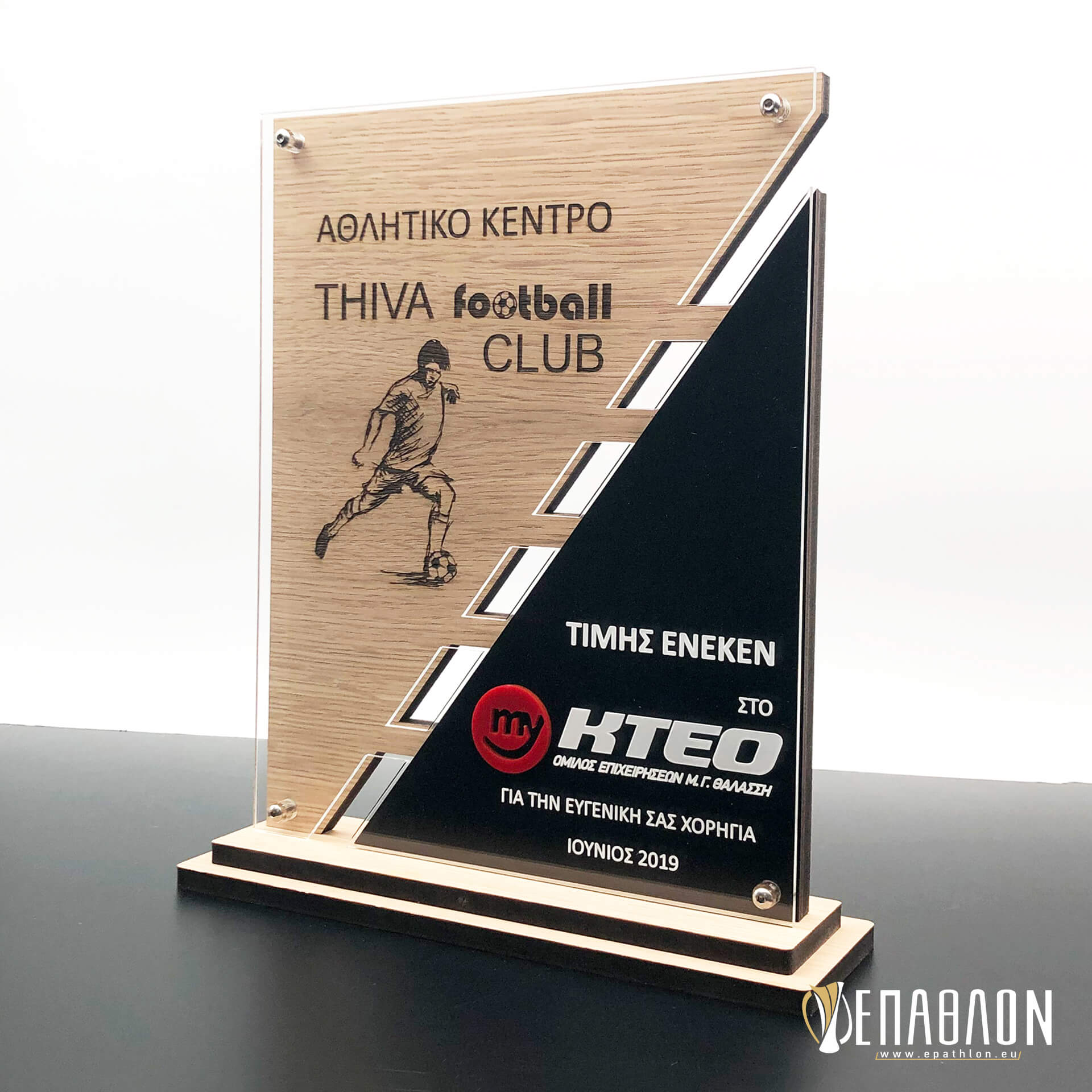 Custom αναμνηστική πλακέτα από ξύλο και ακρυλικό με θέμα ποδόσφαιρο