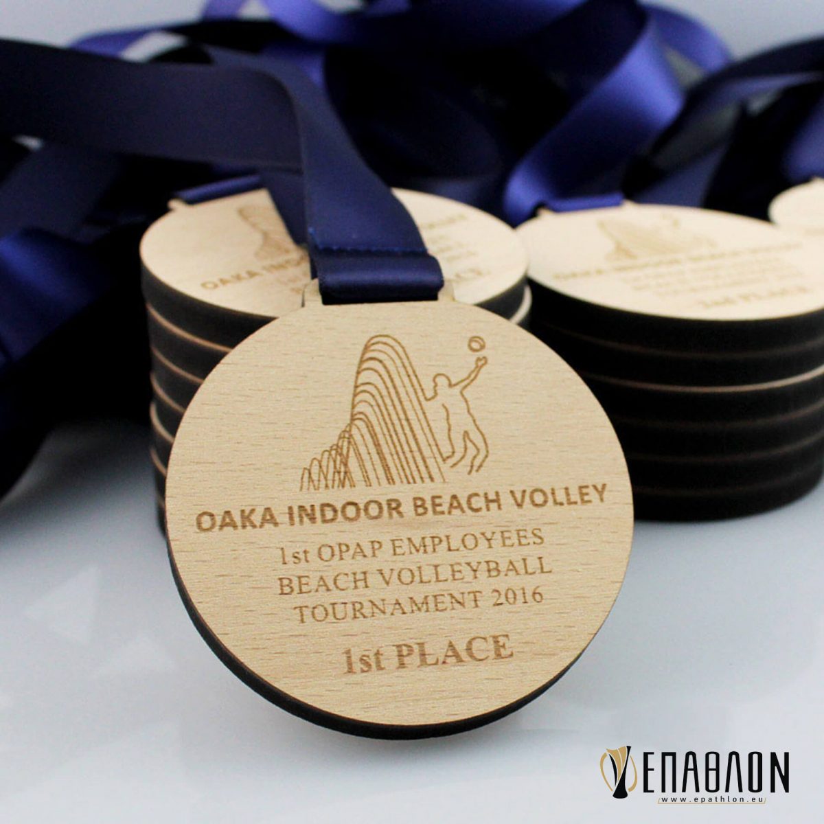 Custom μετάλλιο από ξύλο για το “OAKA INDOOR BEACH VOLLEY”