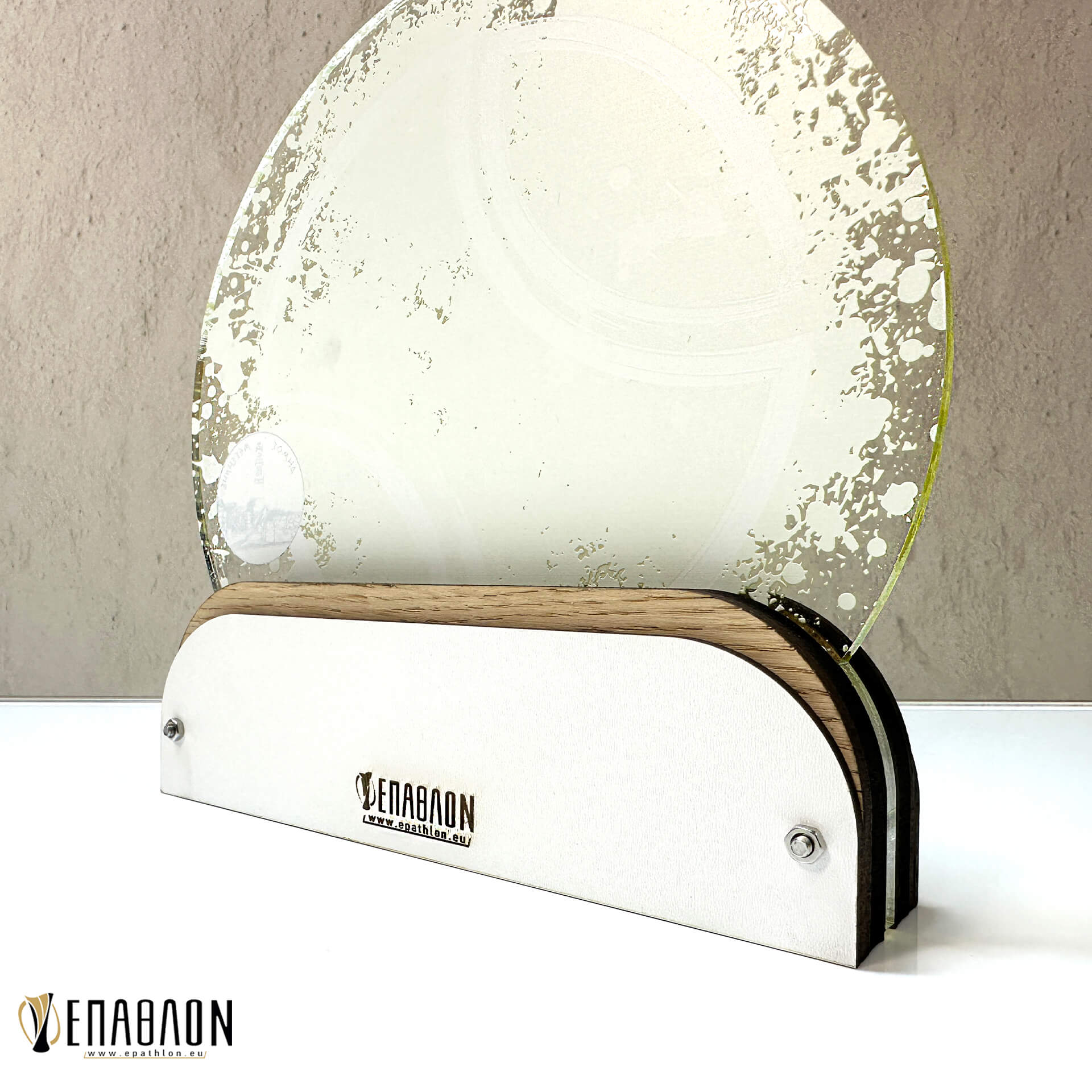 Υλικά: Plexiglass διάφανο πάχους 6mm, Βάση από layer Ξύλων πάχους 8 & 4mm, Ξύλο λευκό πάχους 3mm, UV ψηφιακή εκτύπωση επάνω στα υλικά.