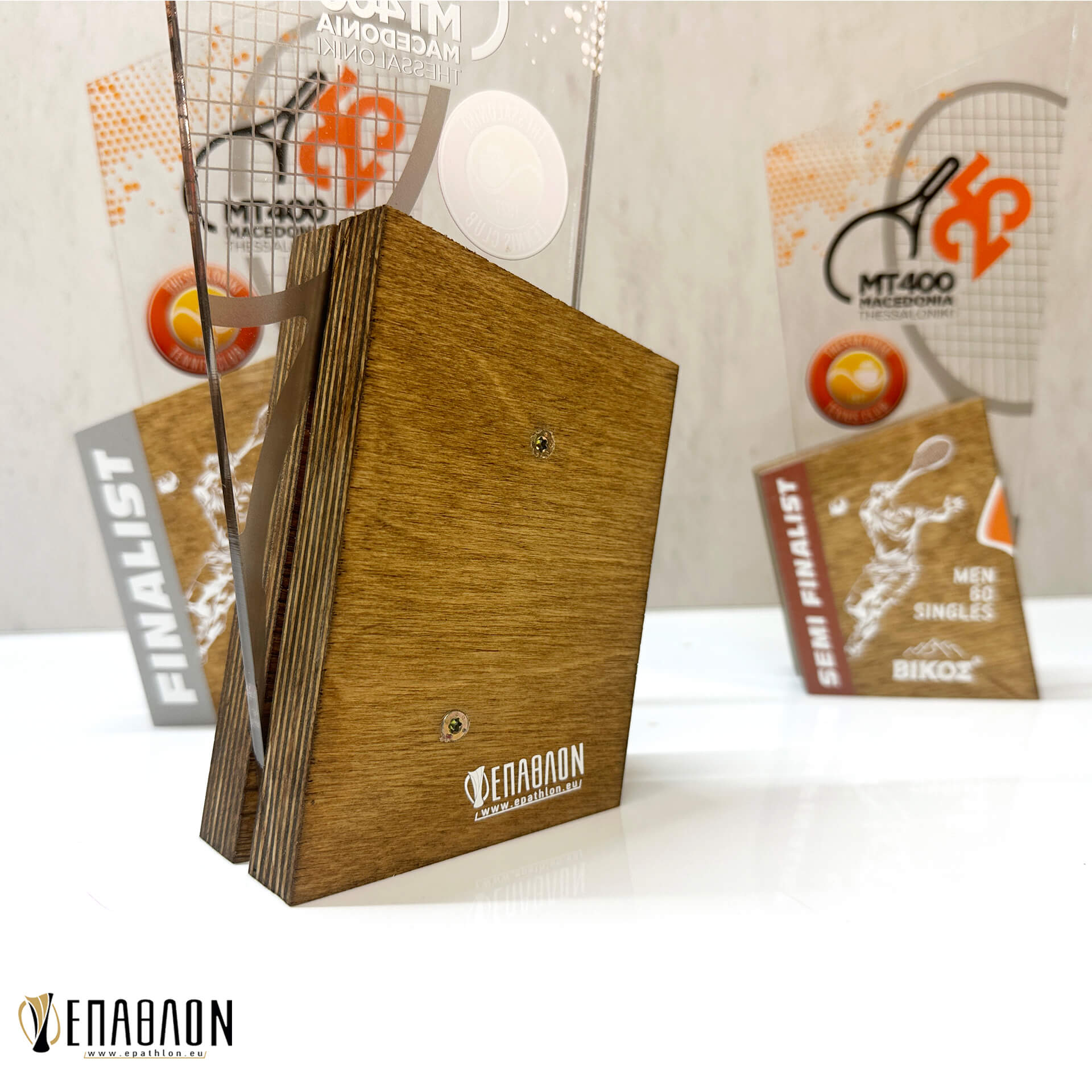 Υλικά: Plexiglass διάφανο πάχους 6mm, Βάση από ξύλο πάχους 21mm με επίστρωση βερνίκι σε απόχρωση καρυδιά, UV ψηφιακή εκτύπωση επάνω στα υλικά.