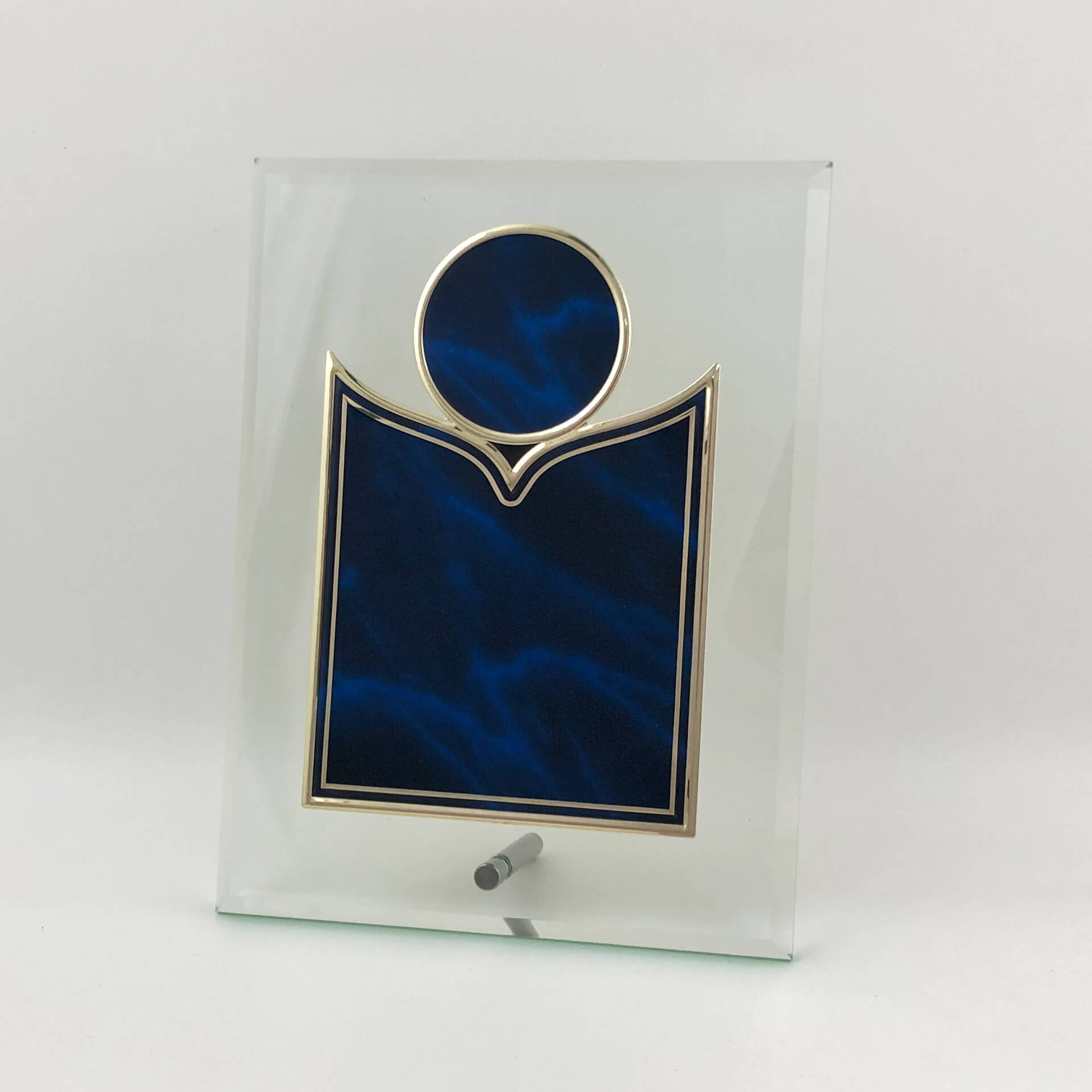 Γυάλινη τιμητική πλακέτα με μπλε αλουμίνιο