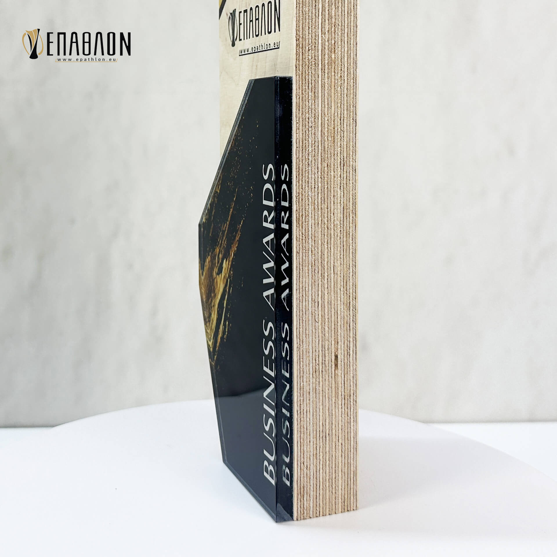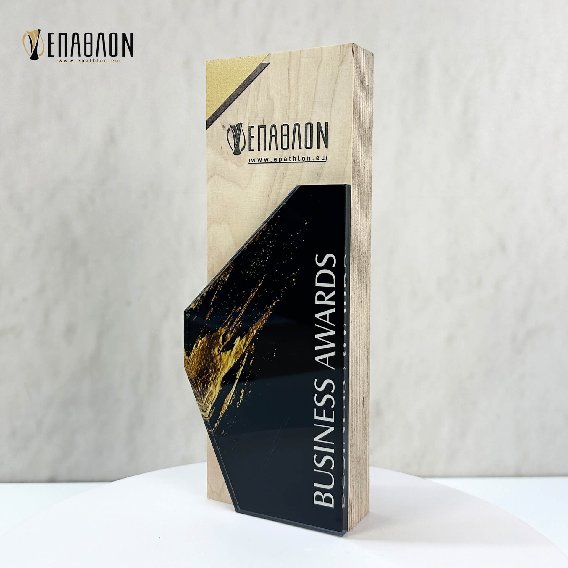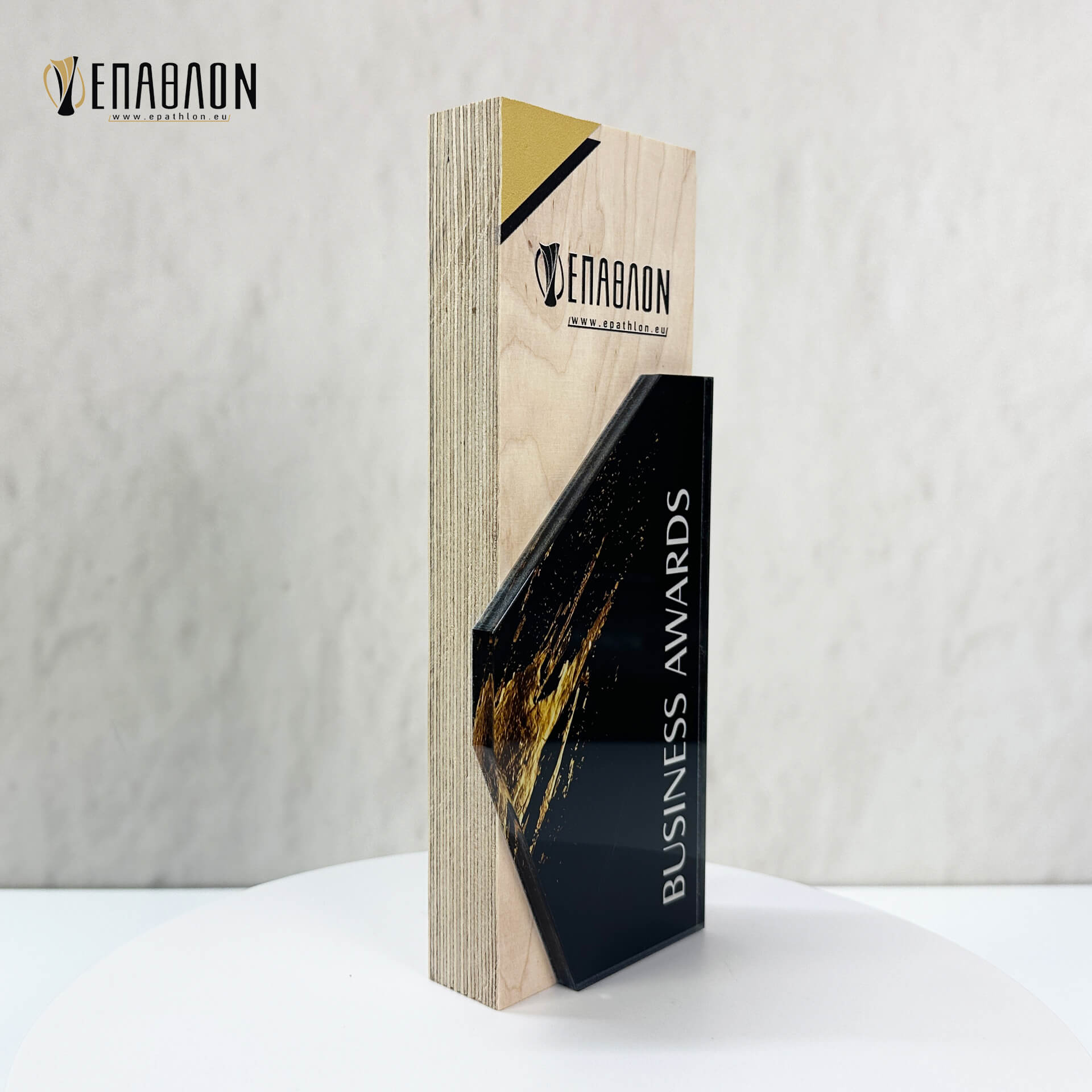 Επιχειρηματικό Βραβείο από j;ylo kai plexiglass με έγχρωμη εκτύπωση επάνω στα υλικά