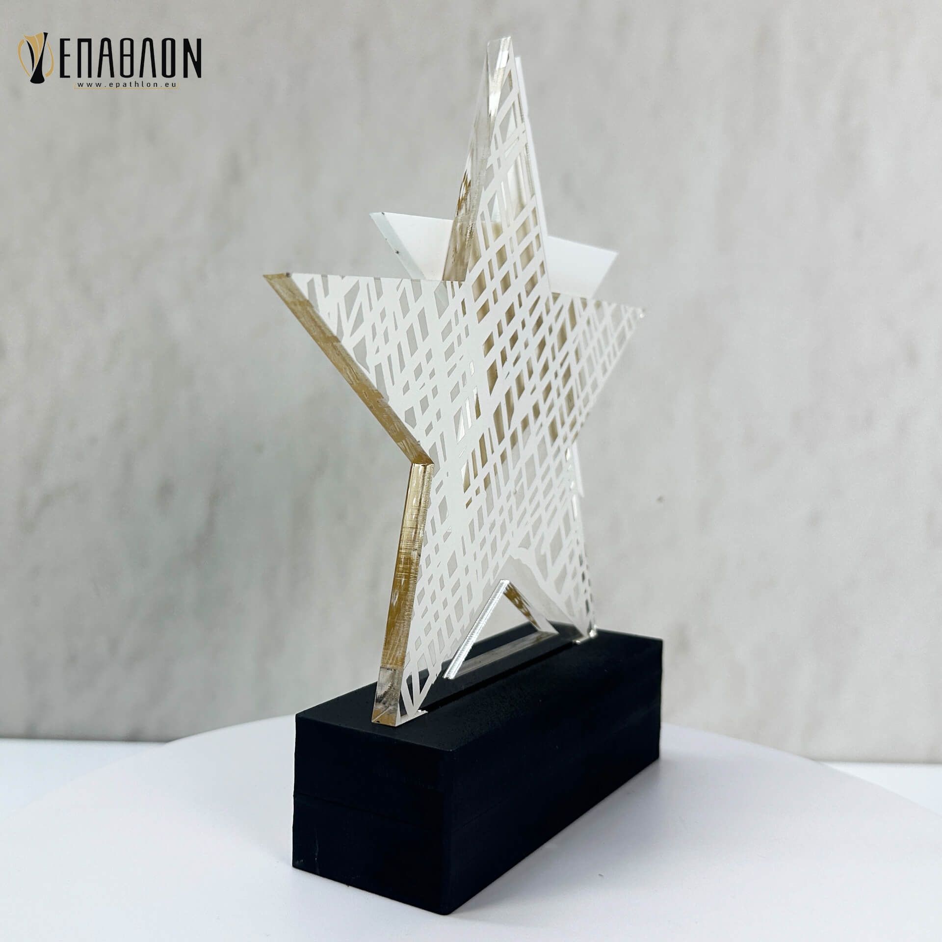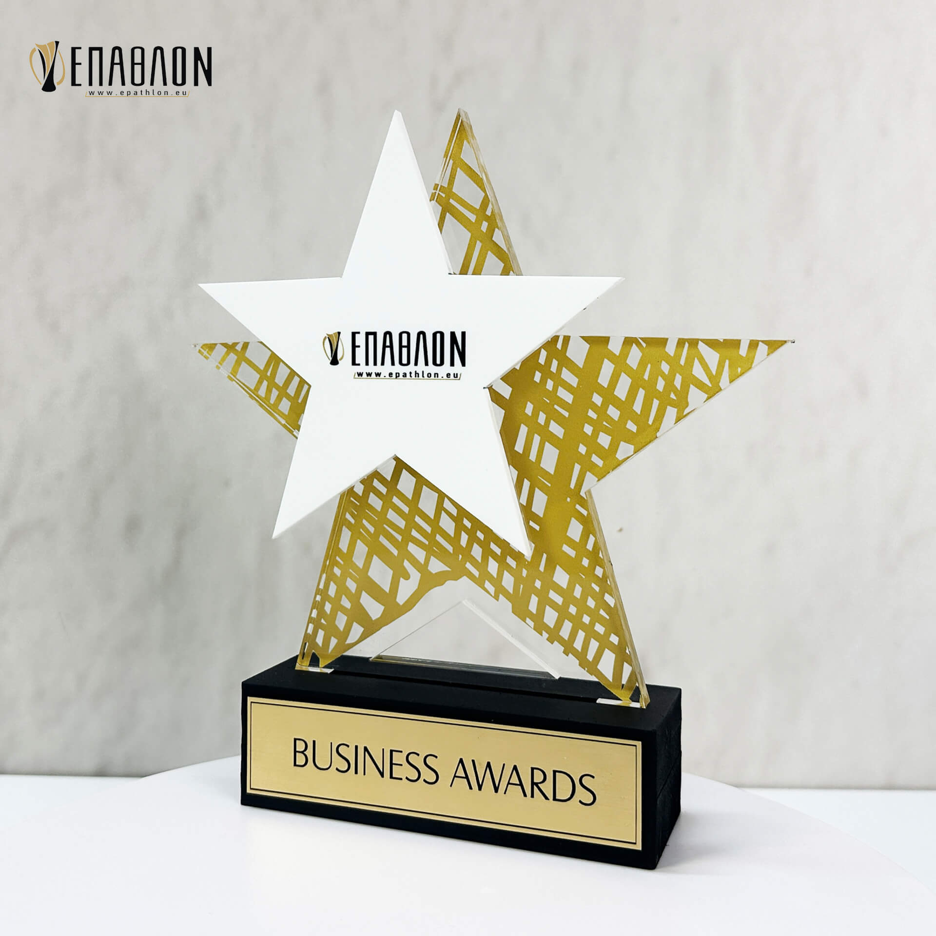 Επιχειρηματικό Βραβείο από plexiglass και ξύλο με έγχρωμη εκτύπωση επάνω στα υλικά