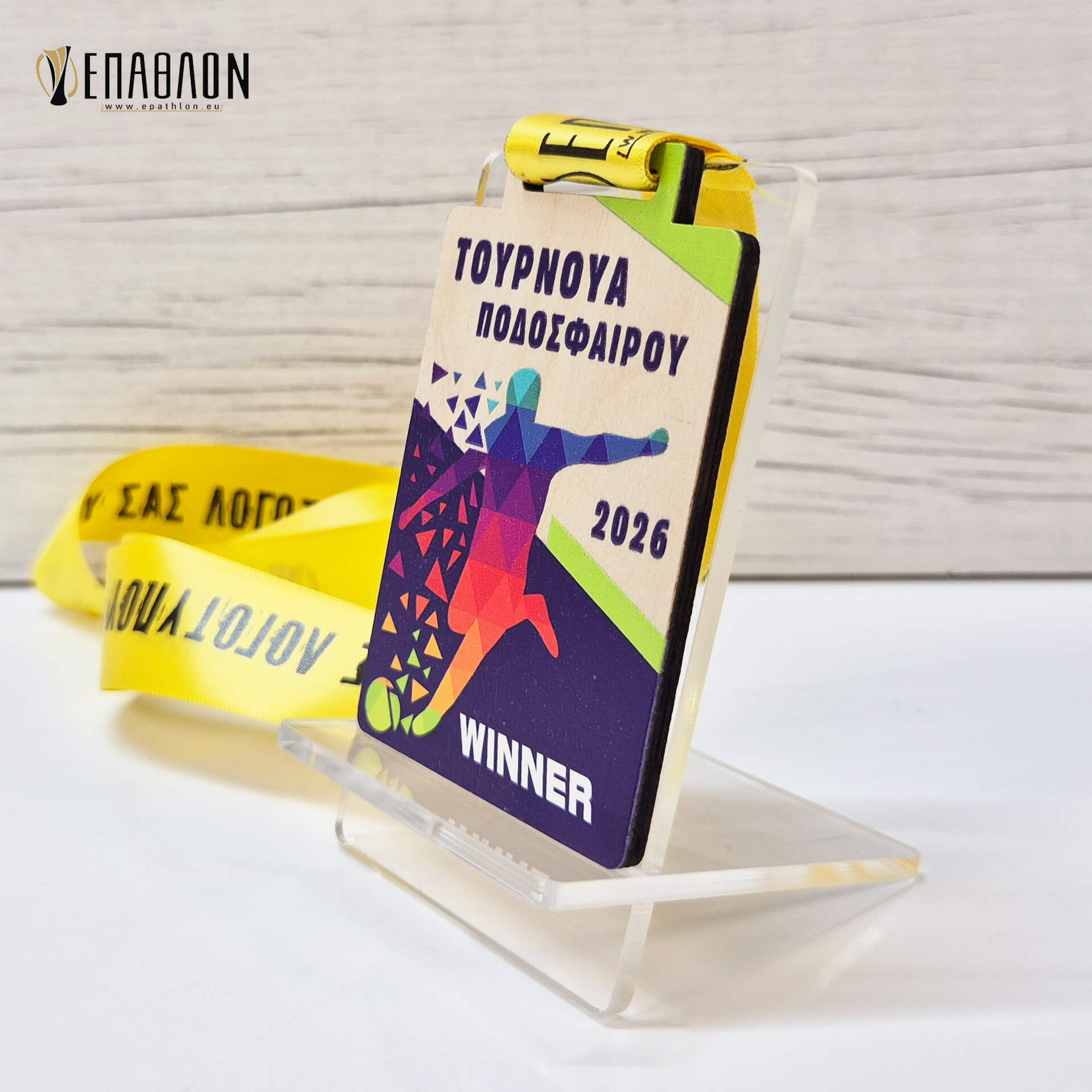 Μετάλλιο από ξύλο πάχους 4mm με έγχρωμη εκτύπωση επάνω στο ξύλο